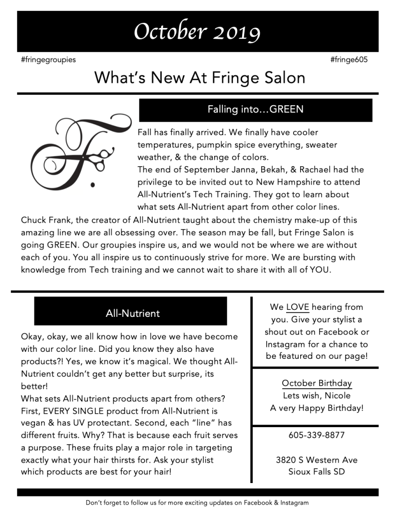 October 2019 News Letter Posted byfringesalonsfOctober 1, 2019Posted inUncategorized Share this: Click to share on X (Opens in new window) X Click to share on Facebook (Opens in new window) Facebook Like Loading... Related