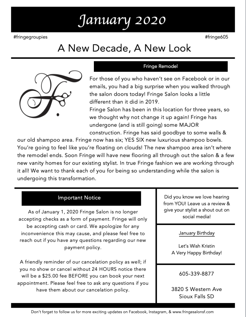 January 2020 News Letter Posted byfringesalonsfJanuary 3, 2020Posted inUncategorized Share this: Click to share on X (Opens in new window) X Click to share on Facebook (Opens in new window) Facebook Like Loading... Related